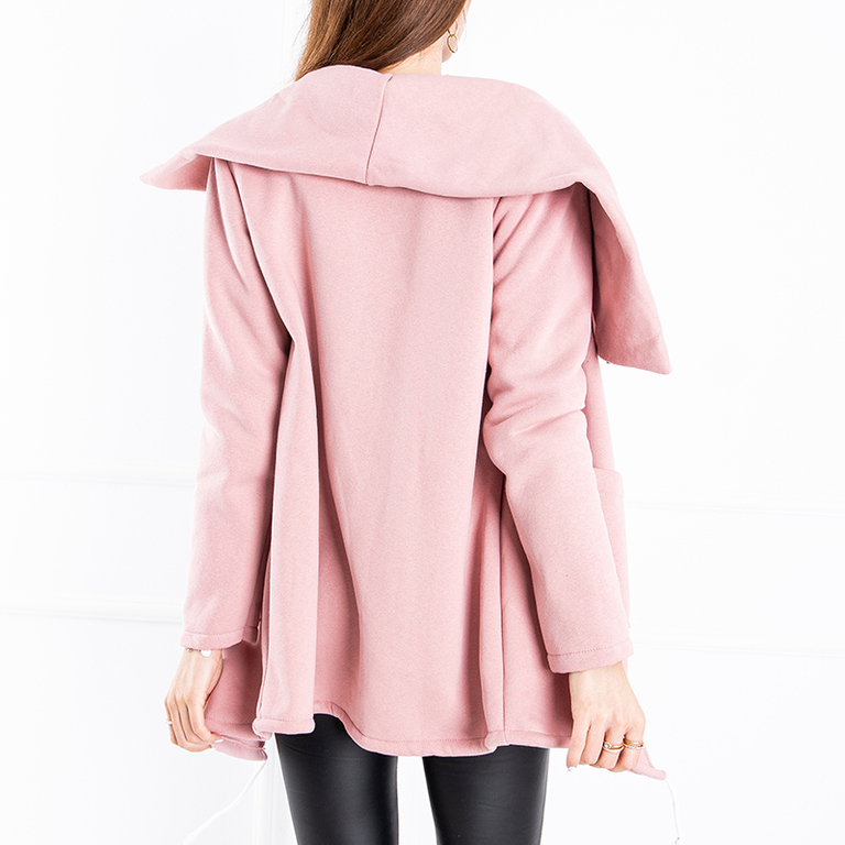 Rózsaszín női meleg kabát aszimmetrikus cipzárral - Ruházat