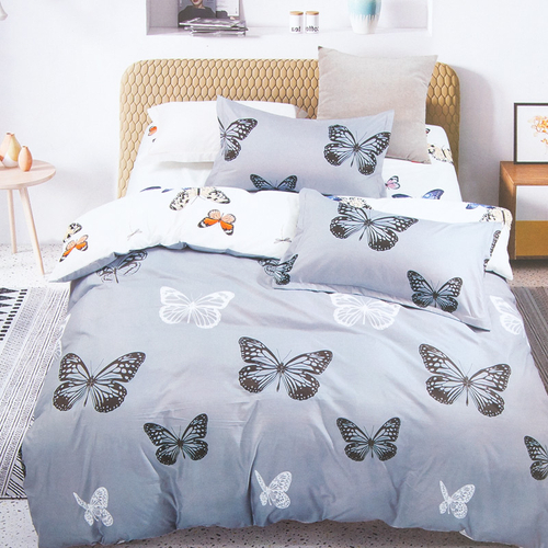 Szürke - kék pamut ágynemű 200x220 pillangós szett 4 darab - Ágynemű