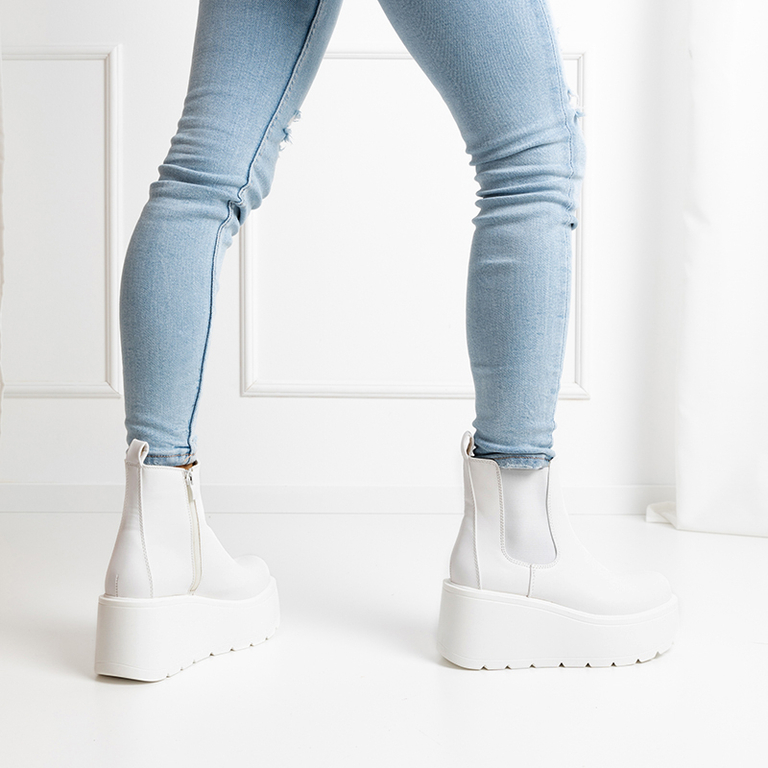 Fehér matt platformcsizma rugalmas betéttel Xsai- Cipő