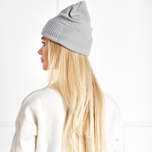Női szürke sapka gyöngyökkel - Kiegészítők