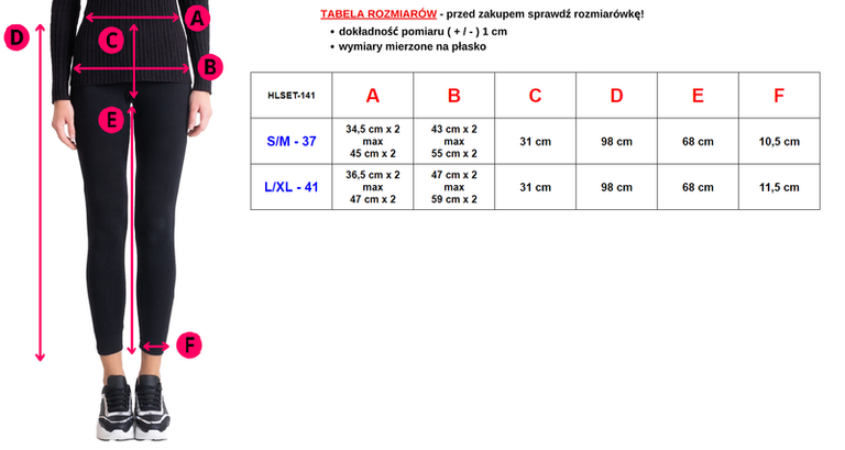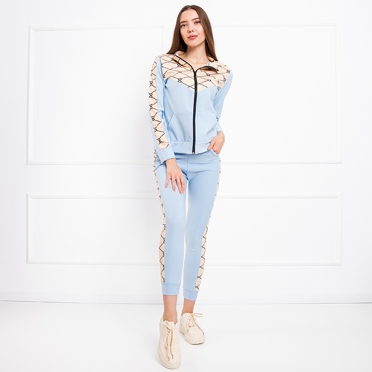 - Női sportszett, sportnadrággal és pulóverrel. A modell kellemes tapintású anyagból készült. A szett teteje elöl nyomtatással, kapucni nélkül, alsó része elasztikus derékkal és a lábak alsó részével és 2 zsebbel. MEGJEGYZÉS: Mérési pontosság (+/-
