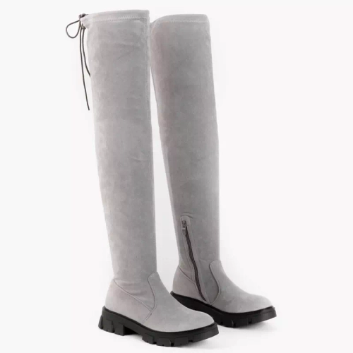 OUTLET Eco - velúr szürke csizma, lapos sarokkal a térd felett Engi- Cipő