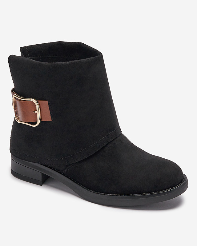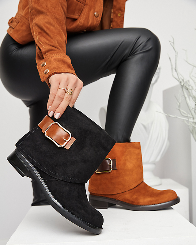 Fekete női öko-velúr lapos sarkú csizma Perela - Cipők