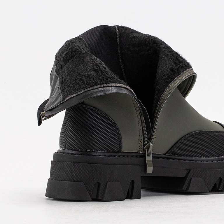 Sötétzöld női csizma masszív Rosidi talpon - Lábbeli
