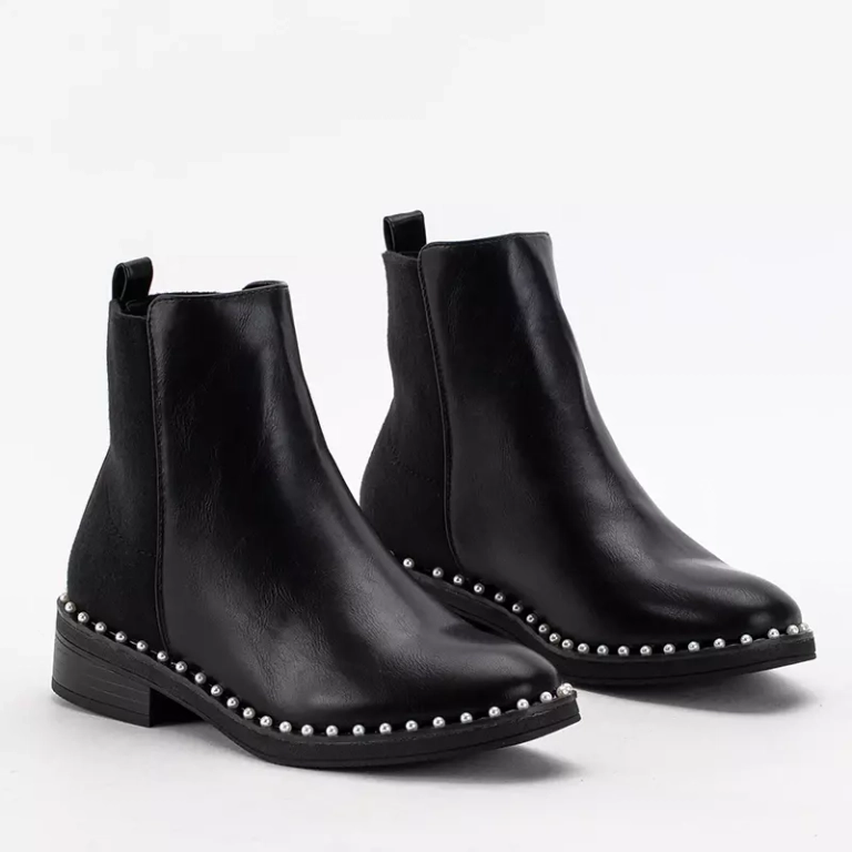 OUTLET Fekete női csizma díszítőgyöngyökkel Manoris - Lábbeli