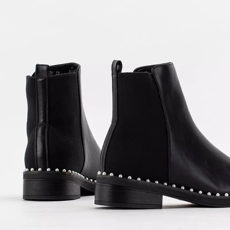 - Klasszikus fekete eko bőr csizma, a modell rövid szőrme szigeteléssel rendelkezik. A talp szélei gyöngyökkel díszítettek. Bebújós cipő rugalmas felsőrésszel. Divatos és stílusos! Megjegyzés: a termék anyagán ragasztónyomok vannak.