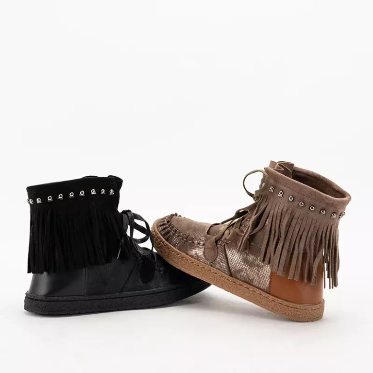 OUTLET Női barna hócsizma rojtokkal Medisal - Lábbeli