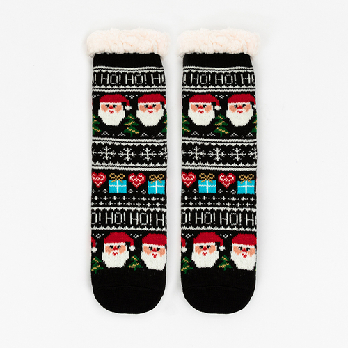 • Vastag női zokni karácsonyi mintával, csúszásmentes alsórésszel. Belül fehér, meleg báránybőr kabáttal van szigetelve. A zokni tökéletes lesz a hűvösebb estékre!