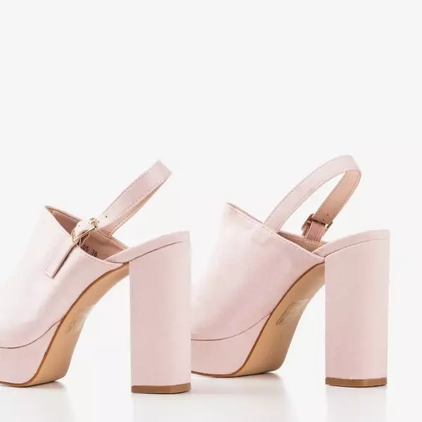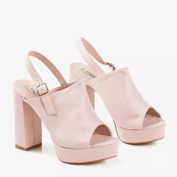 OUTLET Világos rózsaszín öko-velúr szandál magasabb oszlopon Tripsi-Shoes