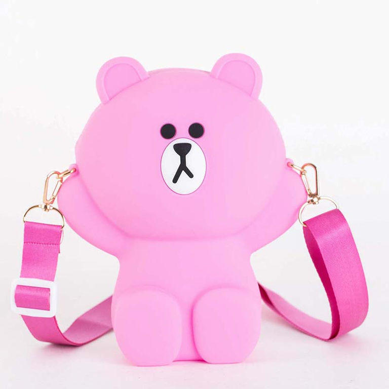 - Kedves mackó alakú szilikon műanyag kézitáska. Cipzáros modell. Belül egy rekesz további zsebek nélkül. A készlet tartalmaz egy hosszú, állítható pántot. Kiváló dekoráció a mindennapi stílushoz.