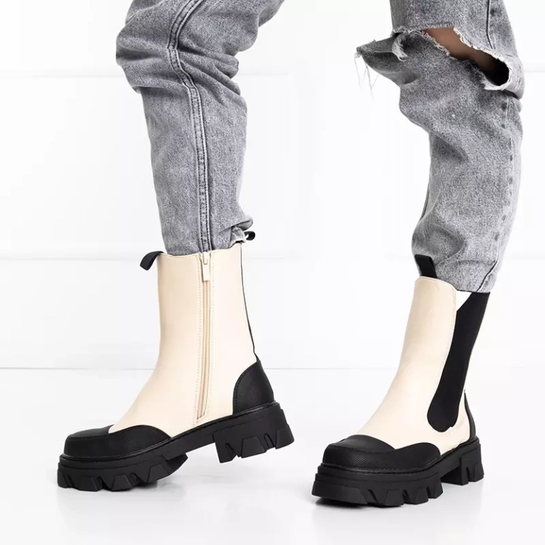 OUTLET Bézs színű női csizma masszív Rosidi talpon - Lábbeli