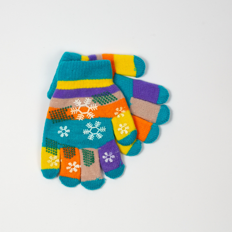 - Lányos kesztyű puha, kellemes anyagból! A modell csillámokkal, színes betétekkel és hópehely nyomattal díszített. Tökéletes sétákhoz hűvösebb napokon!
