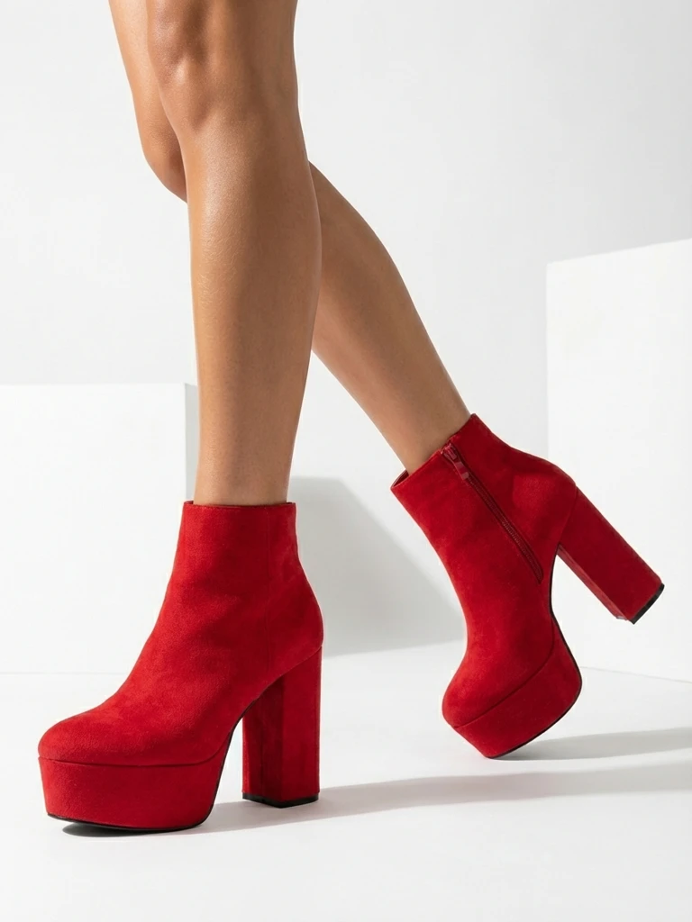• Divatos női csizma magas oszloppal és masszív platformmal. A felsőrész puha ökológiai velúrból készült. Belül finom szőrszigeteléssel rendelkeznek. Oldalt cipzárral rögzítik.