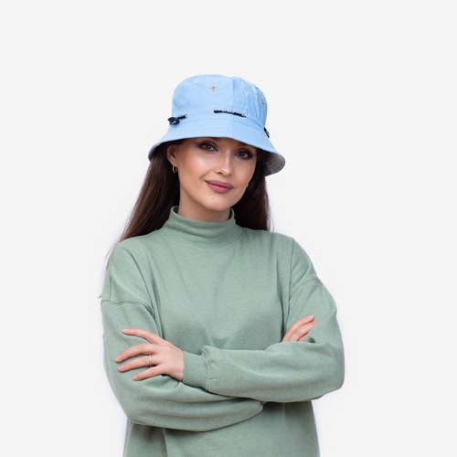 - Stílusos női vödörsapka – kötelező darab ebben a szezonban! A modell ferde, kerek karimájú, amely eltakarja a homlokot és a szemet. A termék univerzális méretű, húzózsinórral rendelkezik, melynek köszönhetően könnyedén a fejedhez igazíthatod a sapkát.