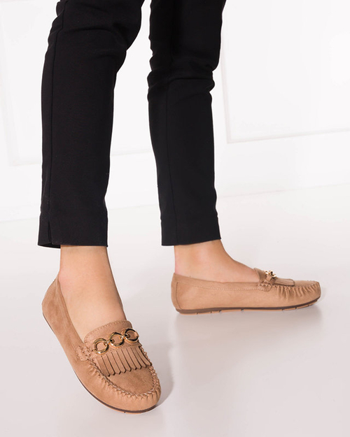 - Klasszikus női mokaszinok fém díszítéssel az orránál. A felsőrész ökológiai zergebőrből készült. A puha, párnázott talpbetét eco-bőrből készült. Tökéletes alap számos hétköznapi megjelenéshez!