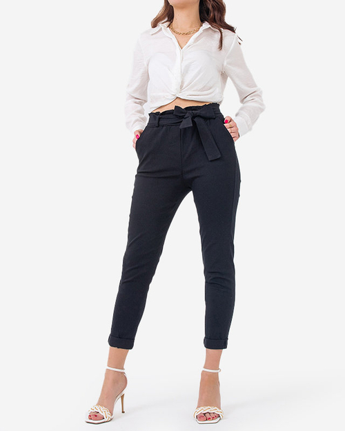 Női magas derekú szövetnadrág fekete színben - Ruházat