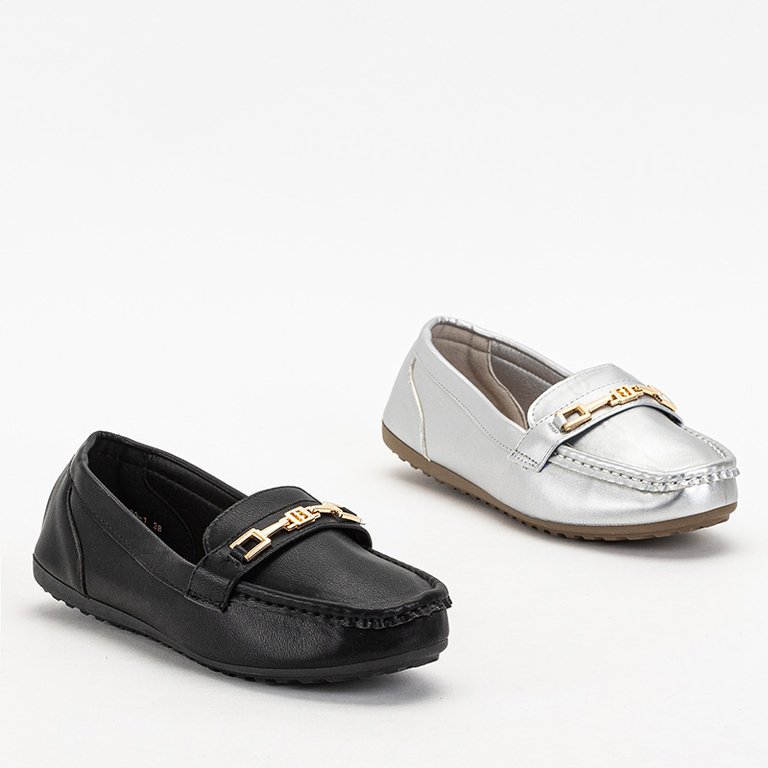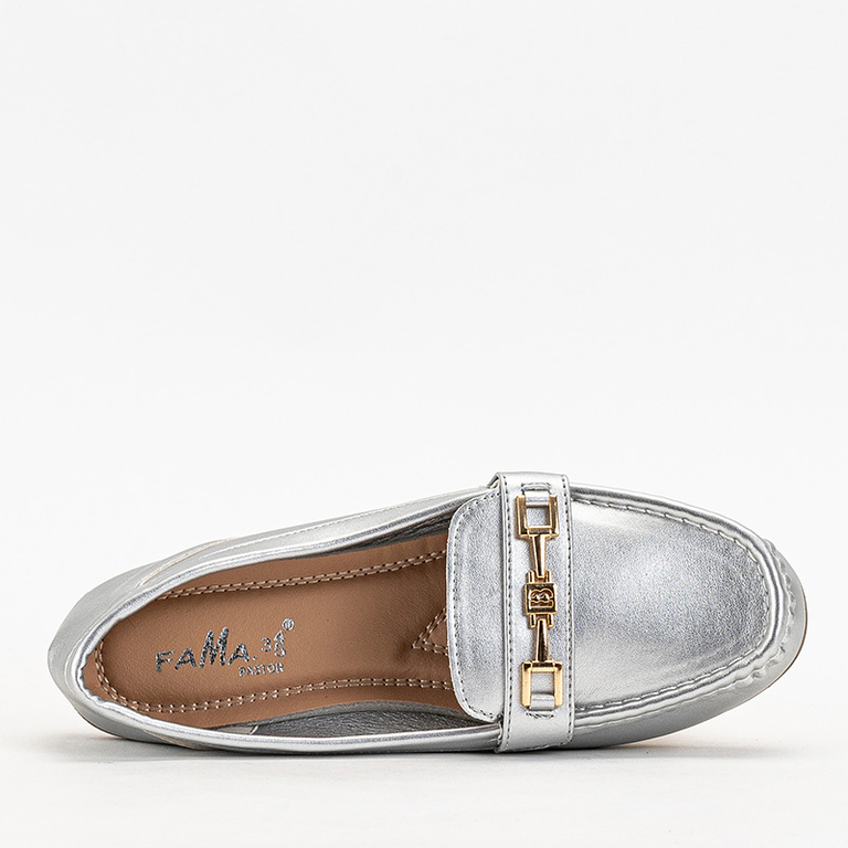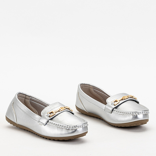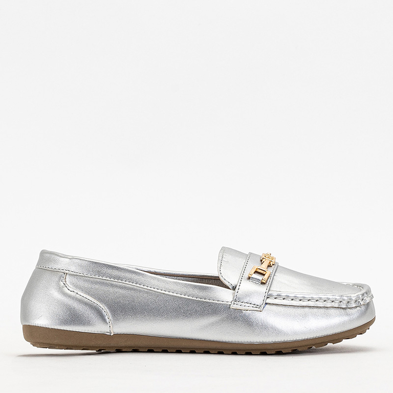 Okeri ezüst női mokaszin, orrján díszes - cipő