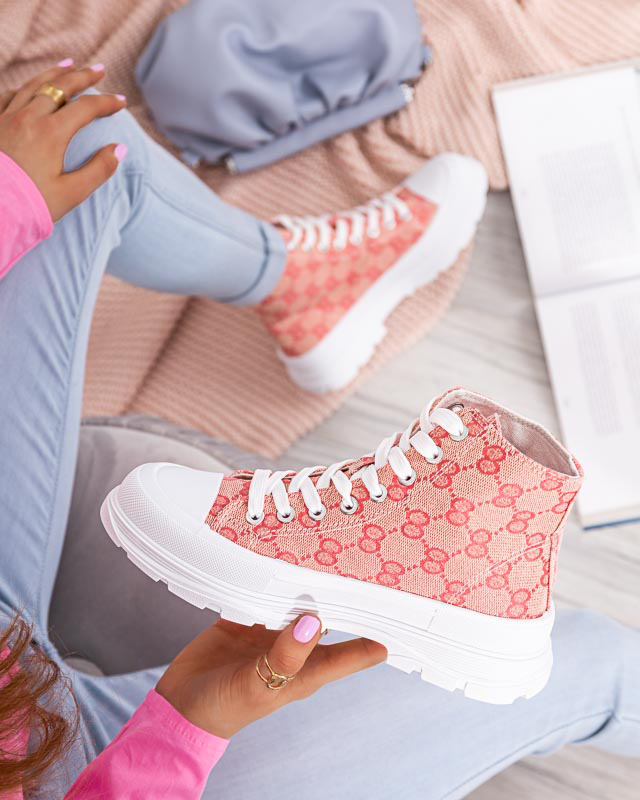 Női rózsaszín magas tornacipő vaskos Sunrime talpon - Lábbeli
