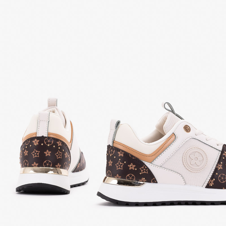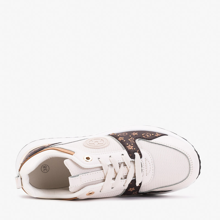- Stílusos női sportcipő lapos talppal, ökológiai bőr és szövet kombinációjából. Fűzős felsőrész, textil talpbetét és gumi talp. Divatos és elegáns!