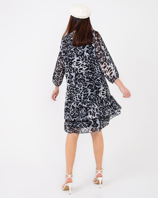 - Rövid, szürke leopárdmintás női nyári ruha. Egyenes szabású, alul fodros modell, 3/4-es ujjú. Poliészter anyag. MEGJEGYZÉS: A mérési pontosság (+/-) 1 cm.