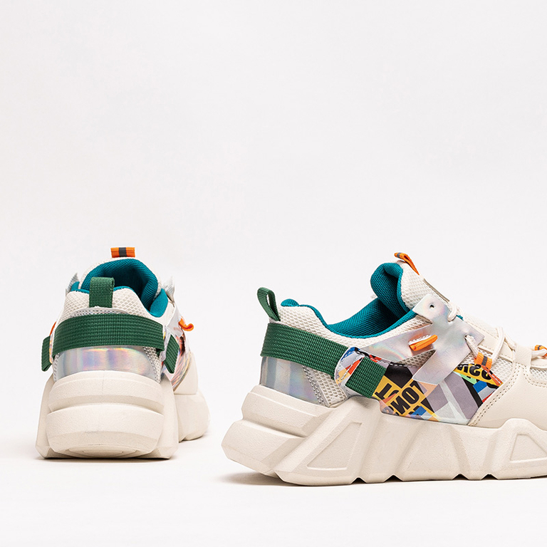 Bézs színű női sportcipő színes betétekkel Deroni - Lábbeli