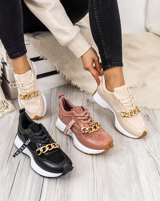 - Mega stílusos női alkalmi sportcipő, fémlánccal és feliratokkal díszítve. A felsőrész ökológiai bőr és ökológiai zergebőr kombinációjából készült. Belseje szövet anyaggal bélelt. Tökéletes alap minden napra!