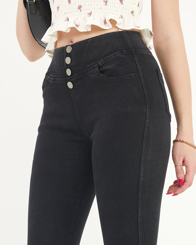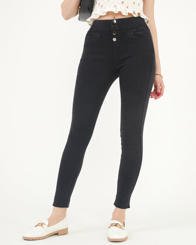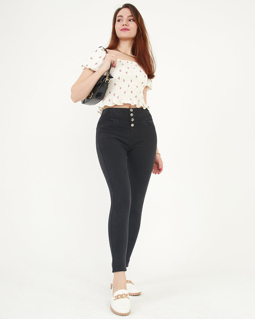 - Rugalmas anyagból készült, magas derekú női tregging. A modell gumis derékkal, dekoratív gombokkal, 4 zsebbel rendelkezik. MEGJEGYZÉS: A mérési pontosság (+/-) 1 cm.