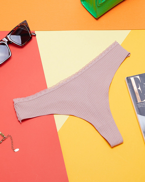 - Klasszikus női bordás tanga dekoratív csipkével. A derékrészen elasztikus szalag biztosítja a kényelmet egész nap. MEGJEGYZÉS: A mérési pontosság (+/-) 1 cm.