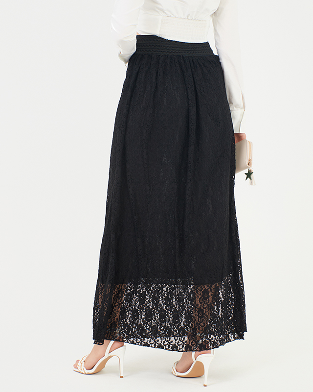 Női fekete csipke midi szoknya - Ruházat