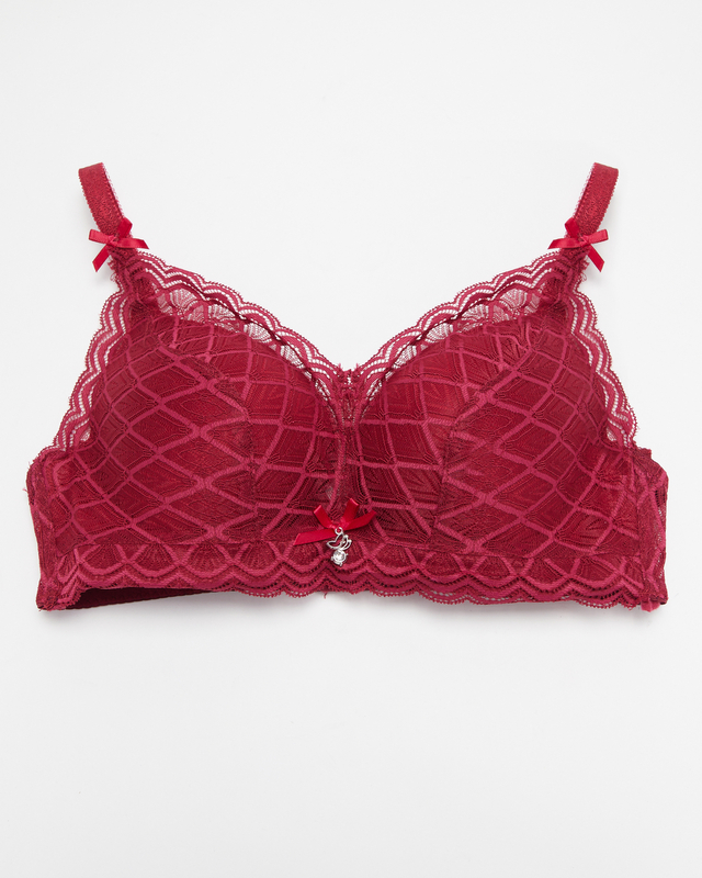 Gesztenyebarna női párnázott melltartó csipkével - Fehérnemű