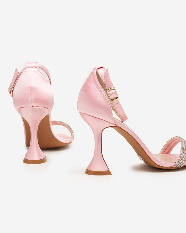 Rózsaszín női szandál magas sarkon, dekoratív cirkóniákkal Manestri - Lábbeli