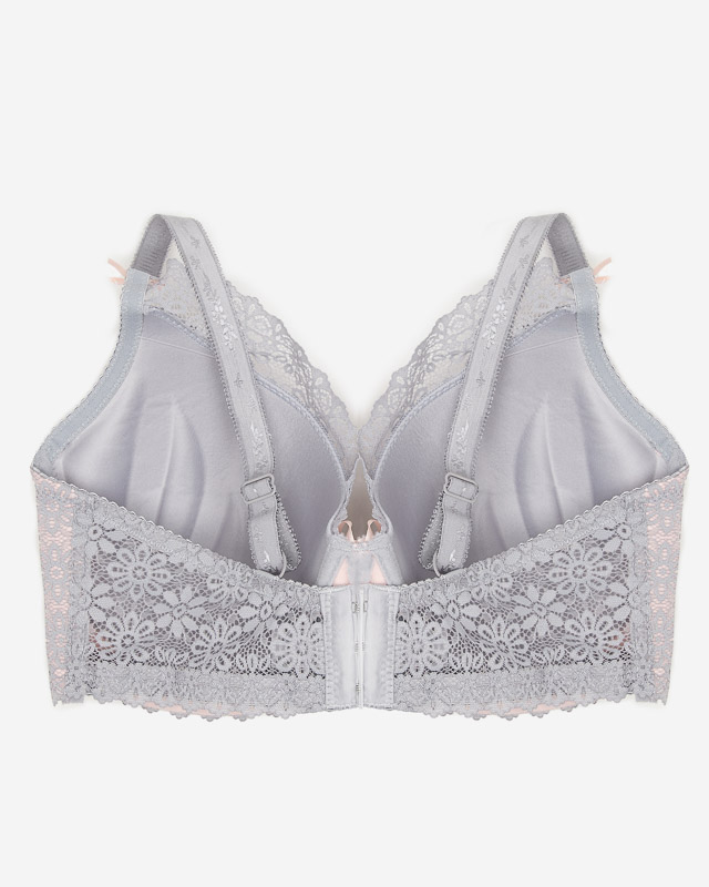 Női rózsaszín melltartó szürke csipkével - Fehérnemű