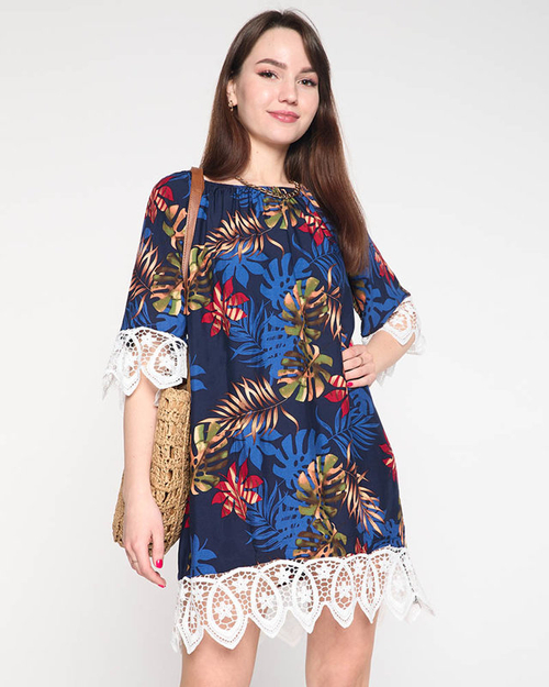 Női sötétkék tunika levelekkel - Ruházat