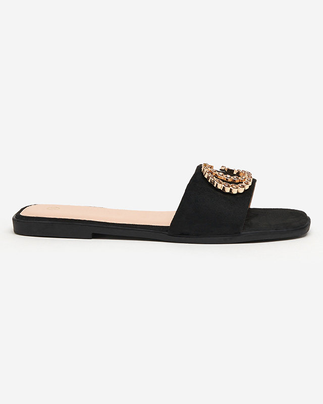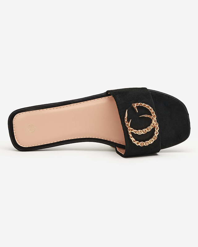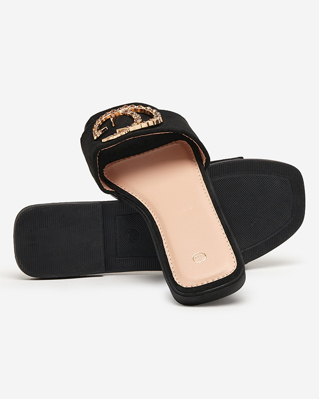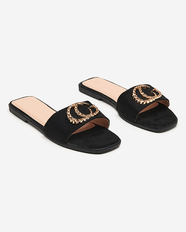 Fekete eco velúr papucs arany Hana dísszel - Lábbeli