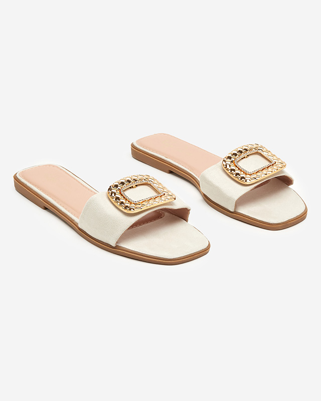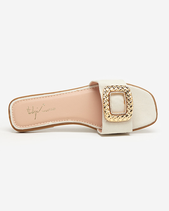 Bézs színű női öko velúr papucs arany csattal Lozi - Lábbeli