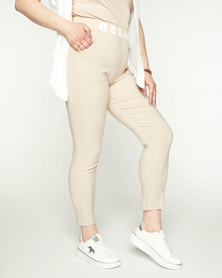 - Divatos női szövet nadrág elasztikus derékpánttal és elülső zsebekkel. Magas derekú modell, a derekán felirattal. Tökéletes alap számos hétköznapi megjelenéshez! MEGJEGYZÉS: A mérési pontosság (+/-) 1 cm.