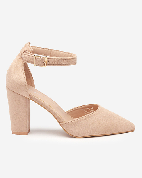 - Klasszikus női szandál oszlopon, ökológiai zerge bőrből. A termék csattal van rögzítve a boka magasságában, ökológiai bőrből készült talpbetéttel rendelkezik. MEGJEGYZÉS: a modellen ragasztónyomok lehetnek a talp és a sarok közelében.