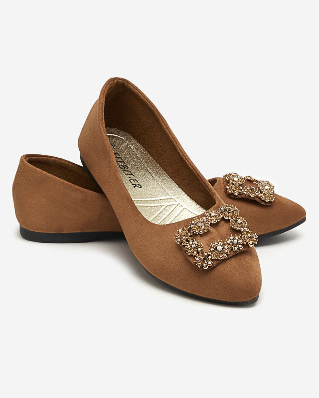 OUTLET Barna női öko-velúr balerinák Linselis díszítéssel - Lábbeli