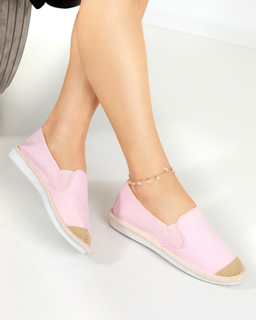 - Nagyon kényelmes női espadrillek lapos talpon, melyet fonott juta zsinór díszít. A felsőrész és a talpbetét szövetből készült. Sok hétköznapi stilizációhoz illeszkednek.