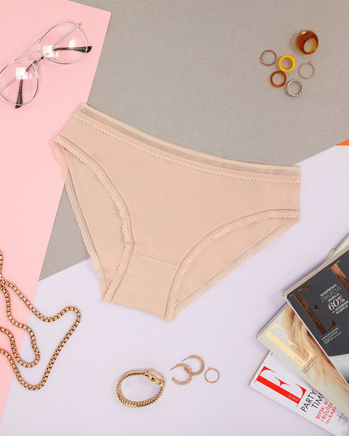 Bézs színű női pamut sima csipkenadrág - fehérnemű