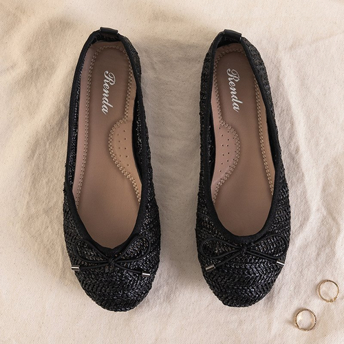 - Szép női balerinák fonott juta zsinórból. Lábujját finom, megkötött masni díszíti. Ökológiai bőrből készült talpbetét - puha párnákkal a láb alatt. Megjegyzés: a termék anyagán karcolások találhatók.