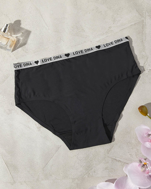Fekete, feliratos díszítőcsíkos női alsónadrág - Fehérnemű