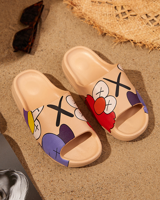 Bézs színű gumis női papucs Pfizz nyomattal - Lábbeli