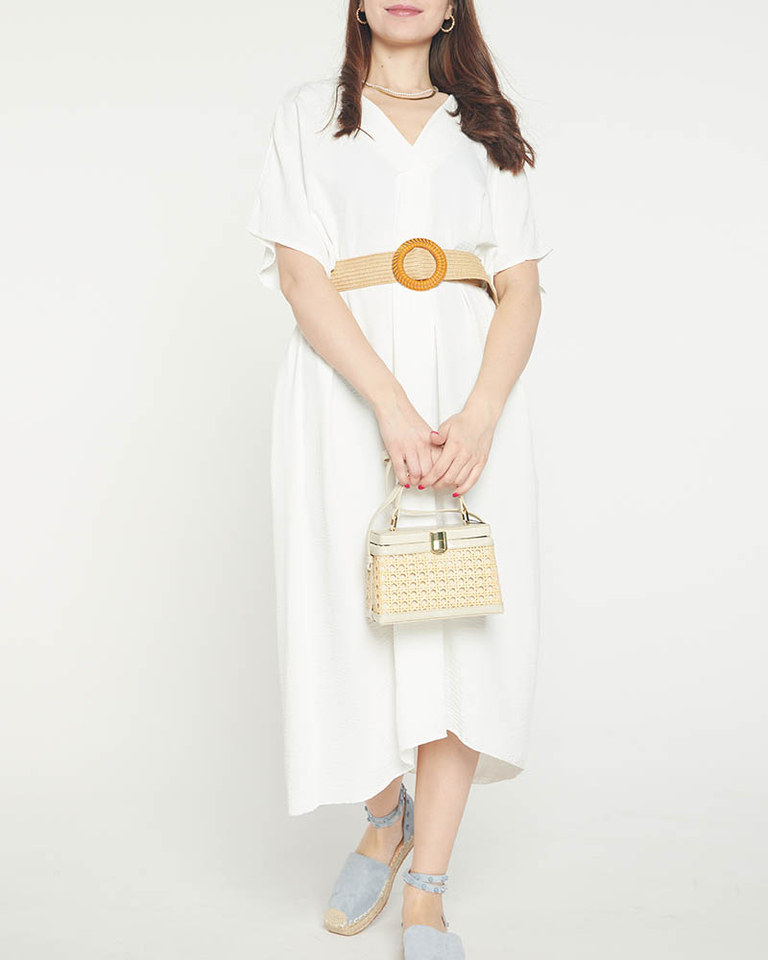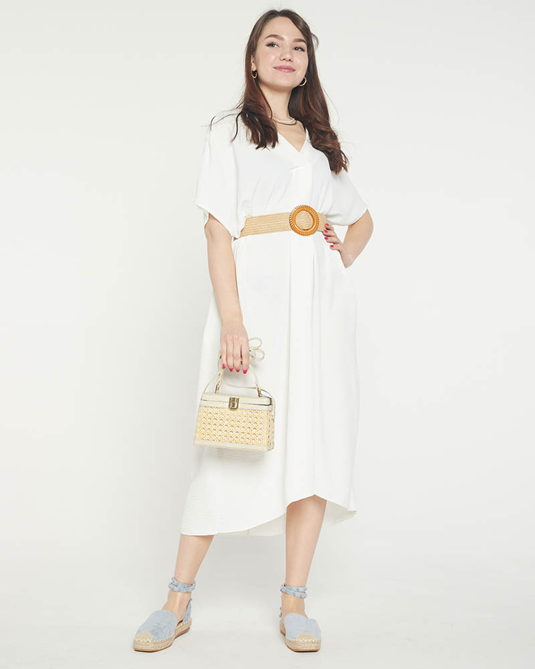 - Stílusos női hosszú oversize ruha, puha és légies anyagból. A V-nyakú modell két zsebbel és a derekát hangsúlyozó övvel rendelkezik. A túlméretezett szabás minden figurához illeszkedik! MEGJEGYZÉS: A mérési pontosság (+/-) 1 cm.