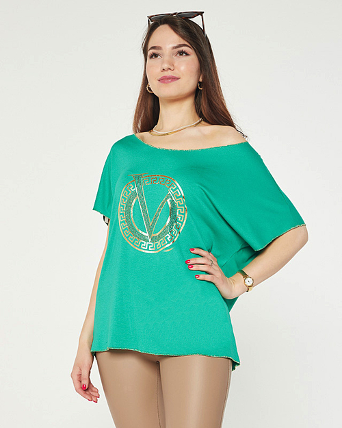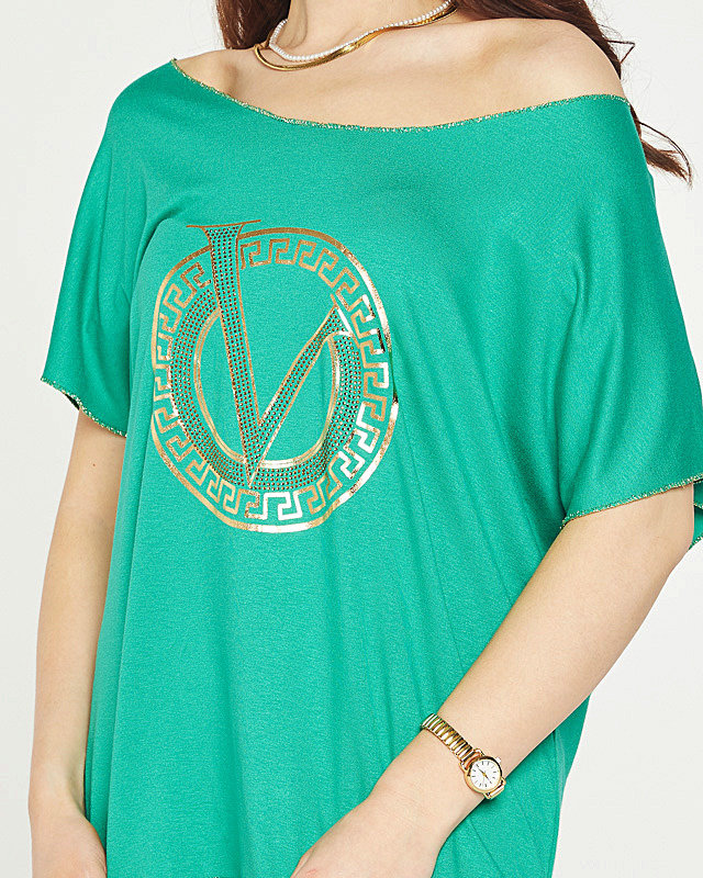 Zöld női blúz mintával és cirkóniával - Ruházat