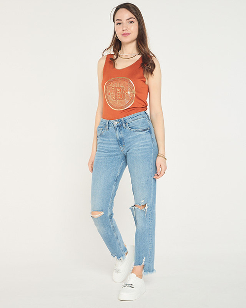 - Elasztikus anyagból készült pántos női felső. Arany mintás az elején. Kerek nyakkivágás. MEGJEGYZÉS: A mérési pontosság (+/-) 1 cm.