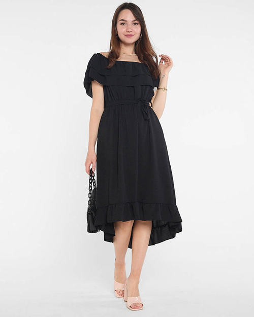 • Kedves női könnyű nyári ruha fodrokkal, szimmetrikus szegéllyel. Fedett vállú termék a la spanyol, gumis, derékban kötés. Tökéletes alap sok nyári ruhához! Mérési pontosság (+/-) 1 cm.