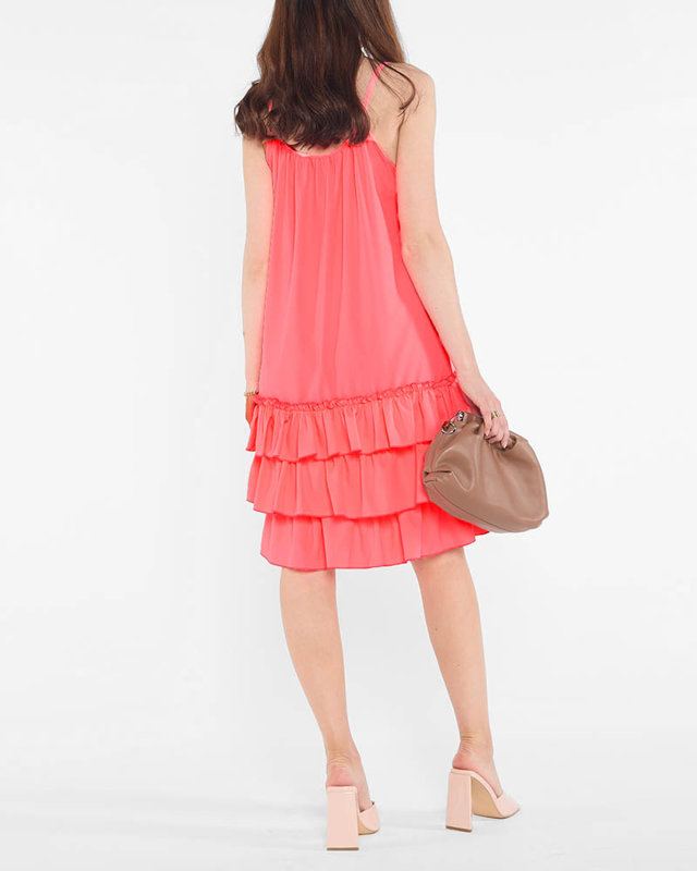 Rózsaszín neon női ruha pántos sallangokkal - Ruházat