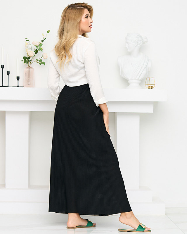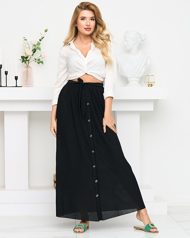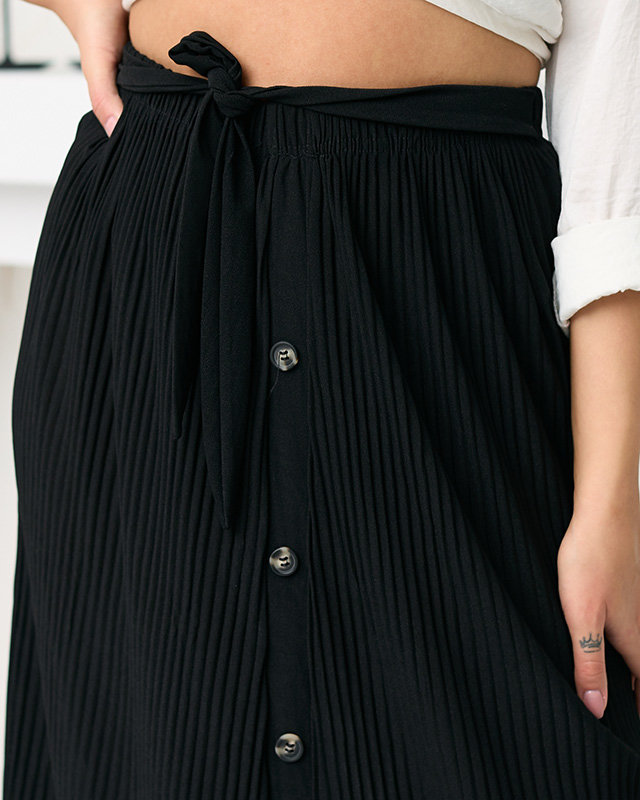 Női fekete rakott midi szoknya gombokkal - Lábbeli