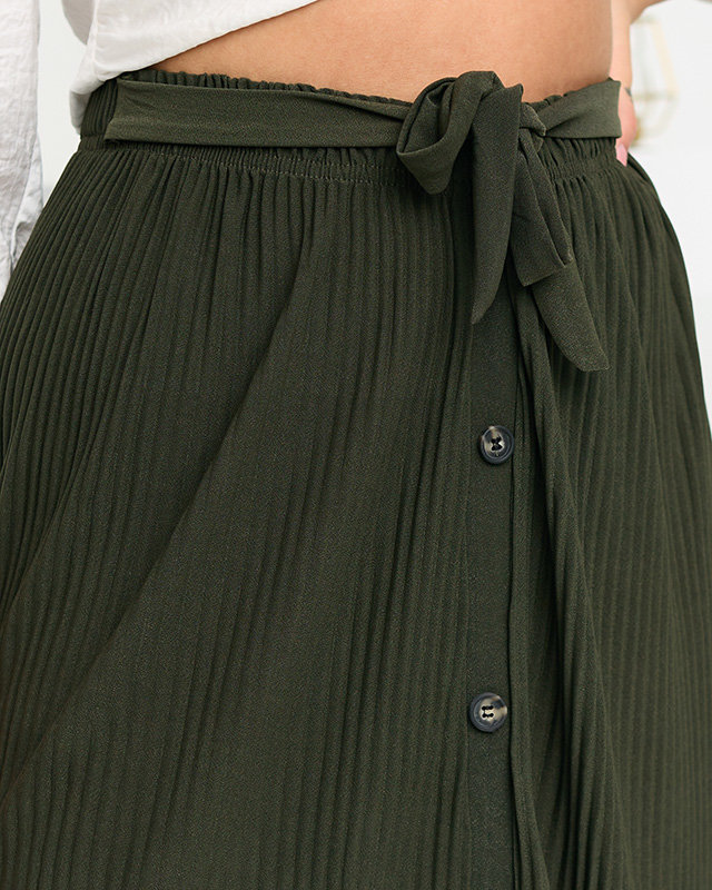 - Stílusos női rakott midi szoknya. A modell gombokkal díszített, széles gumival és derékban kötéssel rendelkezik. Minden nő ruhatárában kötelező darab! Mérési pontosság (+/-) 1 cm.